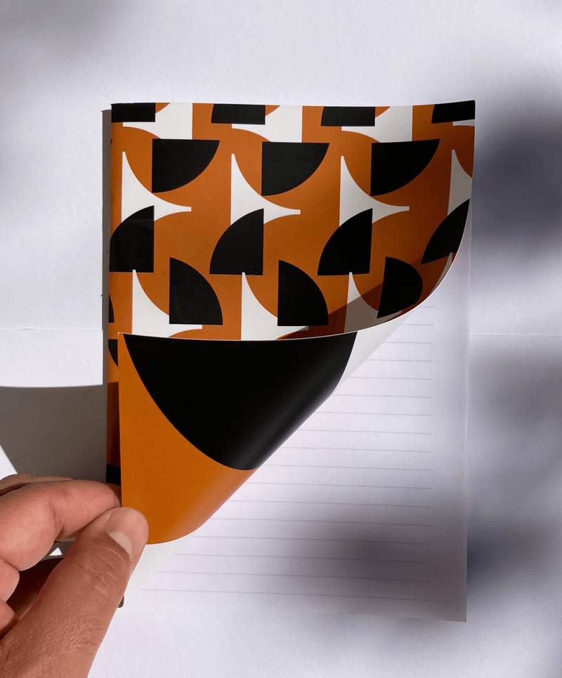 "Ariadne" notebook comes in A5 size and has 48 striped pages inside.