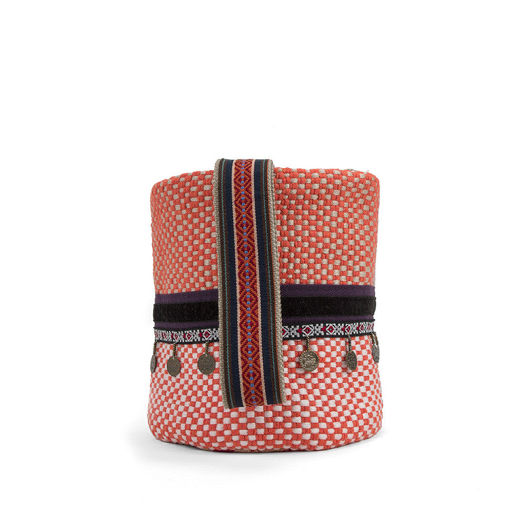 Ethnic Wild Orchid and Orange Handwoven Bucket Bag