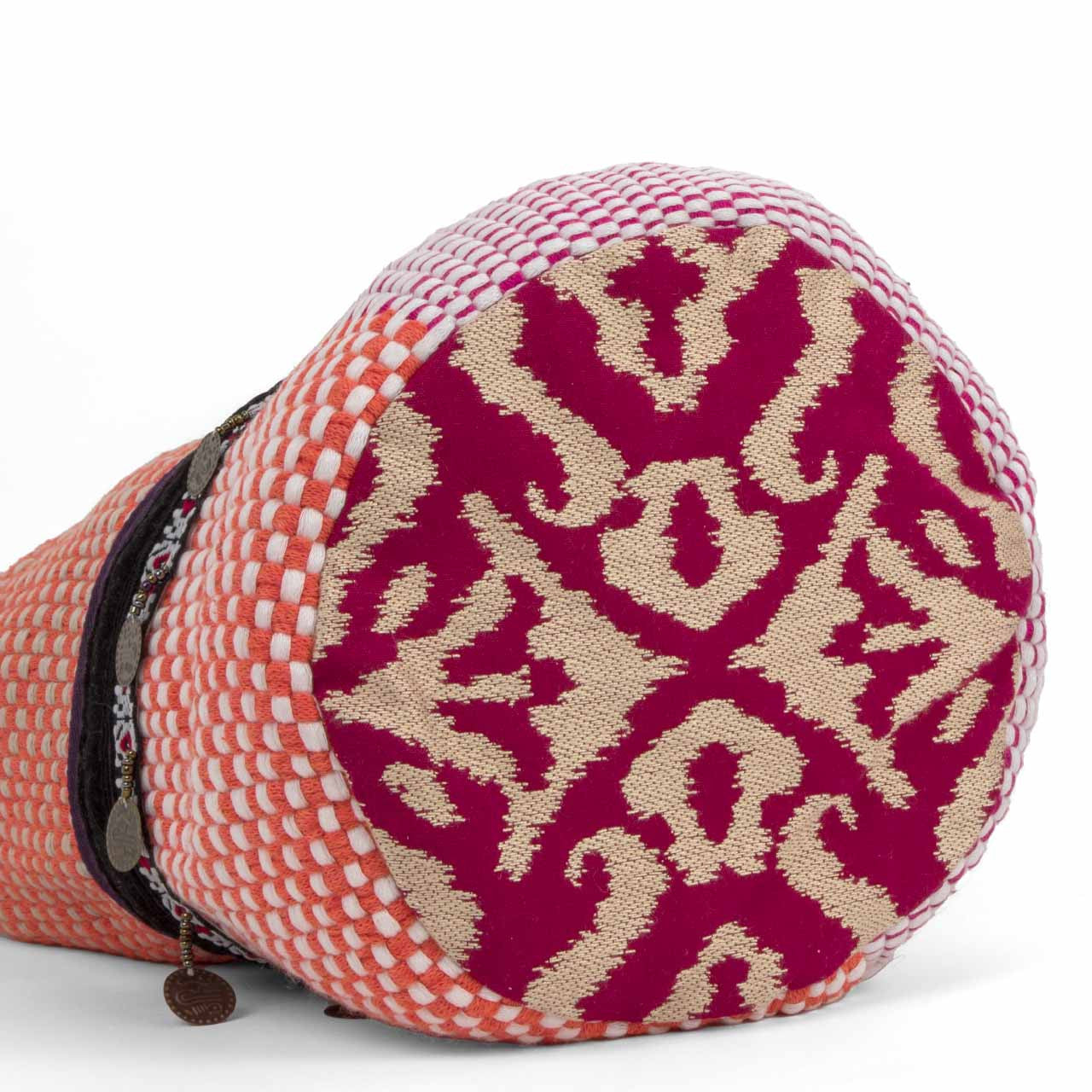 Keep all your essentials within reach while ensuring you look your best everywhere you go with this standout piece. The Ethnic Wild Orchid and Orange Handwoven Bucket Bag feature an inner compartment with a contrasting suede lace in fuchsia for closure that allows easy access. Crafted entirely on the loom by an expert, this is the bag you want to have throughout the season. This bag features a surprise pattern inner lining and can be worn on both sides depending on your outfit or mood.