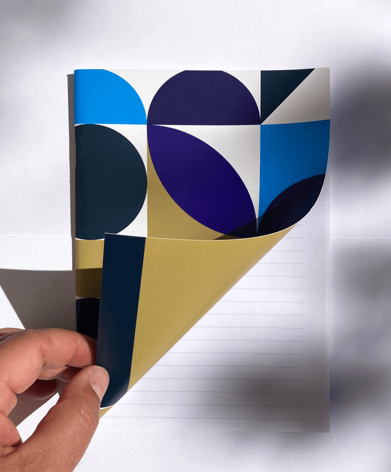 "Hellene" notebook comes in A5 size and has 48 striped pages inside.
