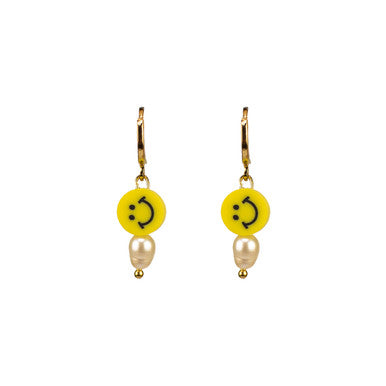 Pearly Smiley Hoop Earrings in Bright Yellow