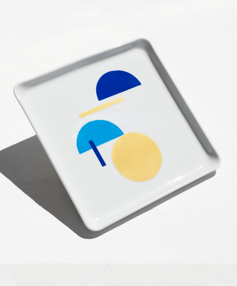 Porcelain square tray made in EU with heat transferred print.