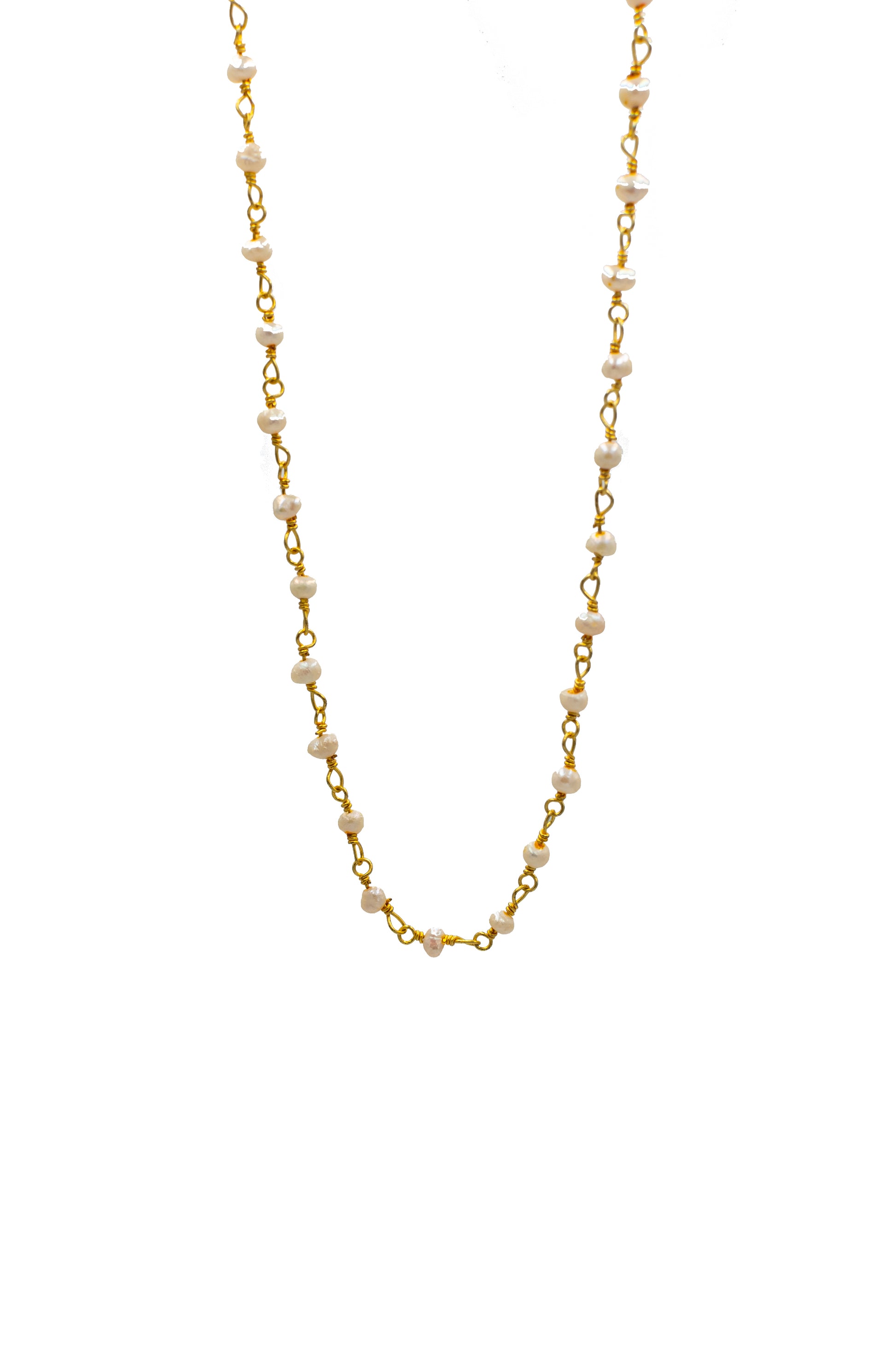 A classic, beatifully handmade, necklace made from gold-plated sterling silver 925, decorated with either black or white beads.