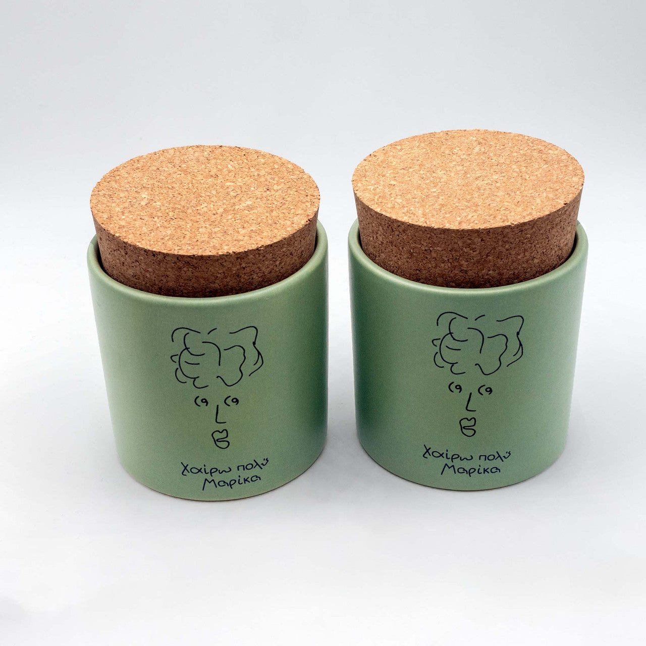 This set of 2 unique ceramic jar can be used to store ground coffee, sugar, salt.