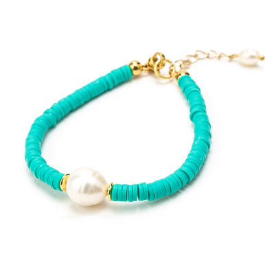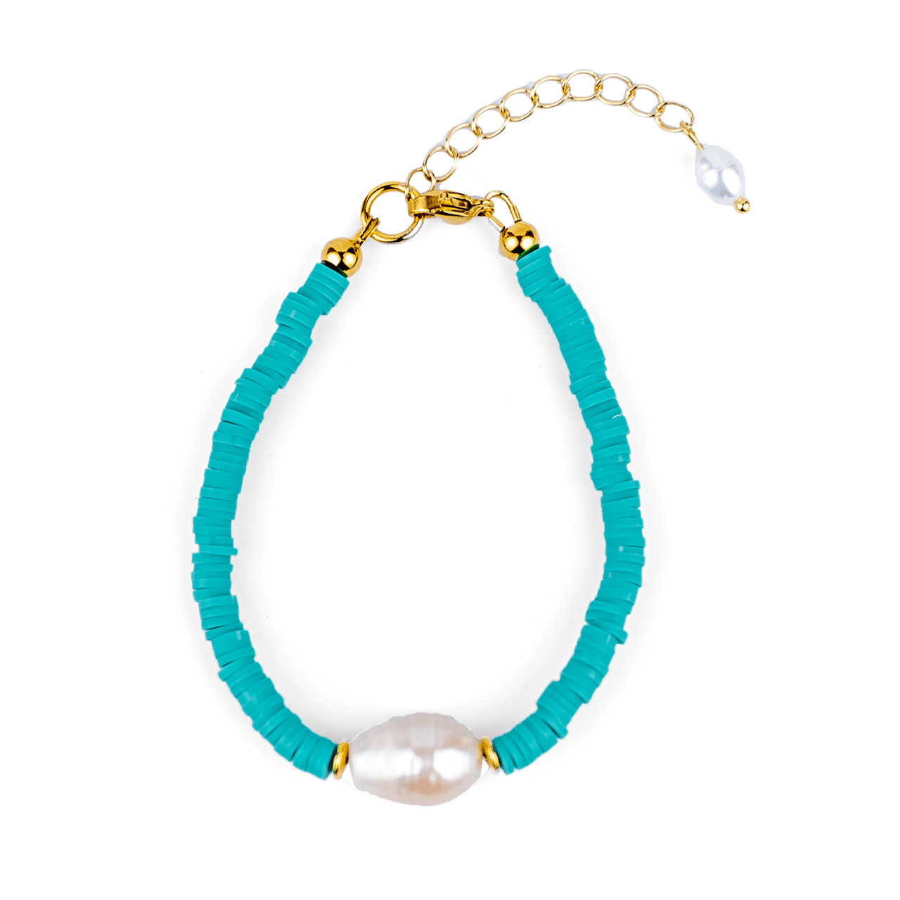 Add an elegant touch to your jewellery collection with this Elegant Pearly Summer Bracelet in Petrol.