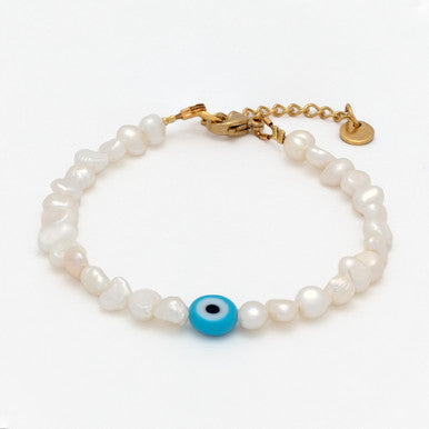Add an elegant touch to your jewellery collection with this Pearly Greek Evil Eye Bracelet.